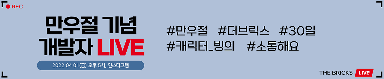 4월 1일 금요일, 오후 5시에 더브릭스 공식 인스타그램 계정에서 라이브를 시작합니다.